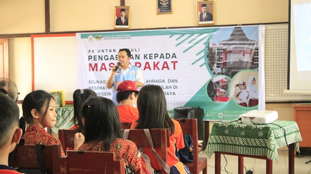 Dosen Jurusan Kedokteran Fakultas Kedokteran melaksanakan salah satu bentuk Tri Dharma Perguruan Tinggi dengan melakukan Pengabdian Kepada Masyarakat di SD Negeri 08 Sungai Raya, Kubu Raya pada hari Rabu, 14 Juni 2023. Kegiatan ini merupakan kegiatan berkelanjutan yang telah dilakukan kedua kalinya di lokasi ini. Kegiatan ini melibatkan dua narasumber yakni dr. Didiek Pangestu Hadi, AIFO-K dengan topik Aktivitas Fisik bagi anak usia sekolah dan juga dr. Muhammad Asroruddin, Sp.M dengan topik Screen-time management pada anak usia sekolah.
