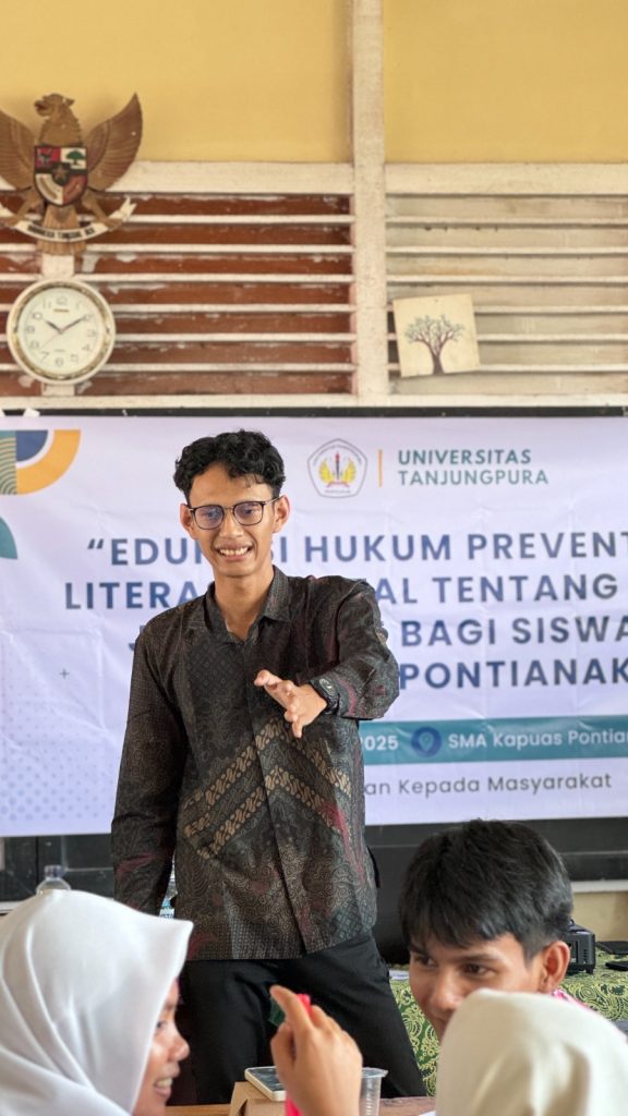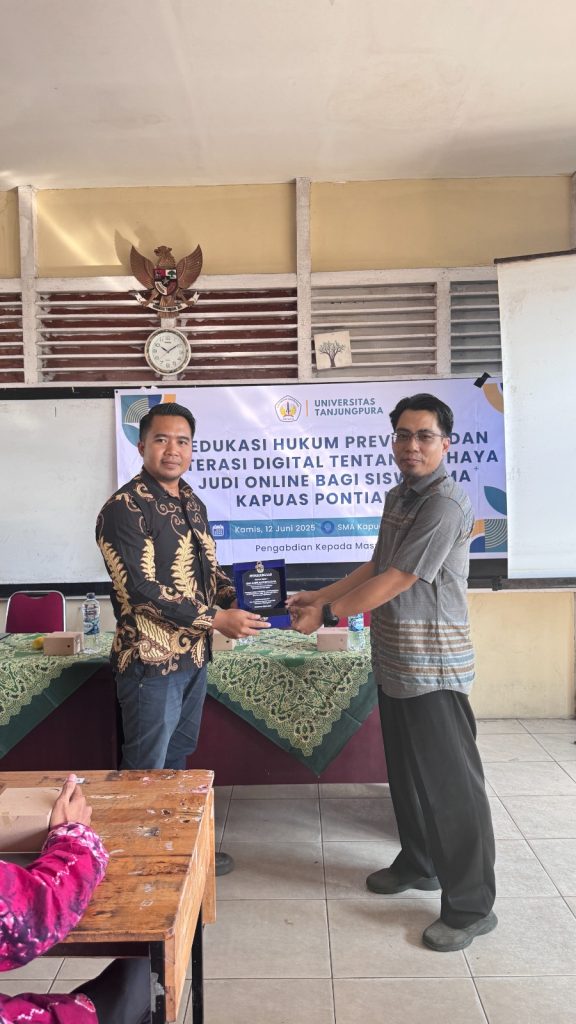 Pontianak, 12 Juni 2025 – Tim Pengabdian kepada Masyarakat dari Universitas Tanjungpura menggelar kegiatan edukatif bertema “Edukasi Hukum Preventif dan Literasi Digital tentang Bahaya Judi Online” di SMA Swasta Kapuas, Kota Pontianak. Kegiatan ini merupakan bentuk kepedulian akademisi terhadap maraknya keterlibatan remaja dalam praktik judi online yang kian mengkhawatirkan.