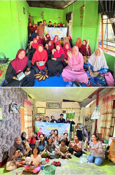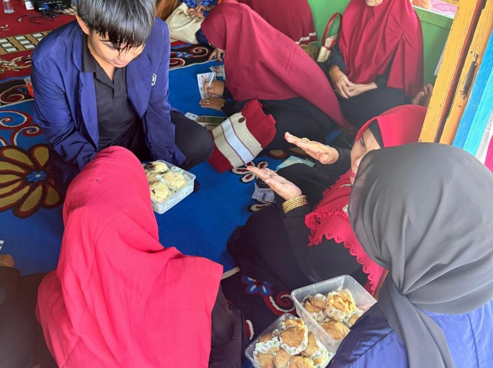 Para ibu-ibu Majelis Taklim dan warga yang hadir tampak sangat antusias mengikuti setiap sesi. Mereka tidak hanya mendengarkan paparan, tetapi juga aktif berdiskusi, bertanya, dan memberikan tanggapan terkait kondisi kesehatan mereka. Setelah sesi edukasi dan demo, warga juga diajak mencicipi langsung roti hasil produksi mahasiswa sebagai bentuk pengenalan dan penerimaan produk. Kegiatan edukasi ini memberikan dampak yang terasa secara langsung, baik dalam peningkatan pengetahuan masyarakat, maupun ketertarikan mereka terhadap alternatif pangan sehat. Selain roti probiotik, warga juga dibekali pemahaman dasar mengenai pemilihan dan penggunaan obat-obatan yang aman dengan pendekatan konsep DAGUSIBU (Dapatkan, Gunakan, Simpan, dan Buang Obat dengan Benar), serta pengenalan tanaman herbal sekitar sebagai solusi alami penanganan gejala lambung ringan.